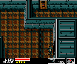 ボスの部屋を出たら、水路を下に戻って、陸に上がります。 左の画像を参考に、ここのドア(カード6)で、プラスチック爆弾を最大限まで手に入れます。(このあとのボスで必要になります。また、この下の画面の敵兵士はレーションを落とします。パンチで倒しましょう。)その後、再びビル3の地下100階へ向かいます。